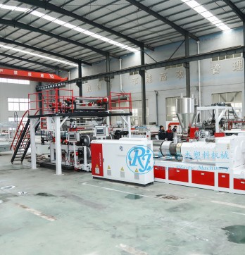 PET片材生產(chǎn)線是我公司結(jié)合多項(xiàng)生產(chǎn)工藝配方體系,鞏固研發(fā)出的一種免結(jié)晶干燥新型擠出片材生產(chǎn)線。采用精密三輥壓延工藝技術(shù),減少了原料的粘度,提高了冷卻效率,大大提升片材的品質(zhì)和產(chǎn)量。? 生產(chǎn)線由平雙擠出機(jī),液壓換網(wǎng),熔體計(jì)量泵,模具,斜三輥,定型平臺(tái),靜電消除,表面涂油,牽引機(jī),分割機(jī),收卷機(jī)等。